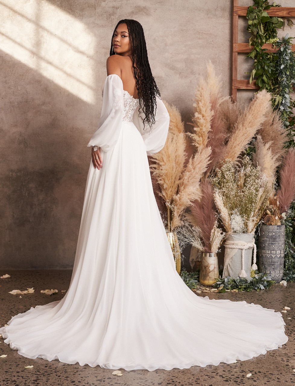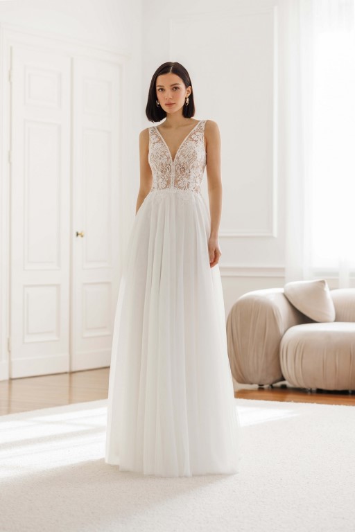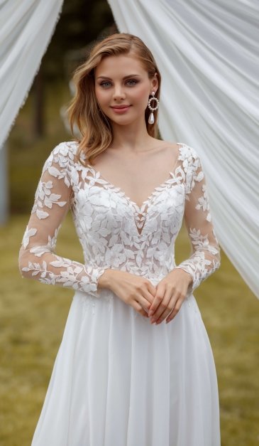Naše kolekce zahrnují široký výběr romantických svatebních šatů ve stylu boho s jemnou krajkou, půvabných vintage modelů až po moderní střihy v různých stylech. Kromě toho u nás najdeš vhodnou módu pro civilní obřad, stylové dirndly, elegantní večerní a plesové šaty a kvalitní svatební doplňky.