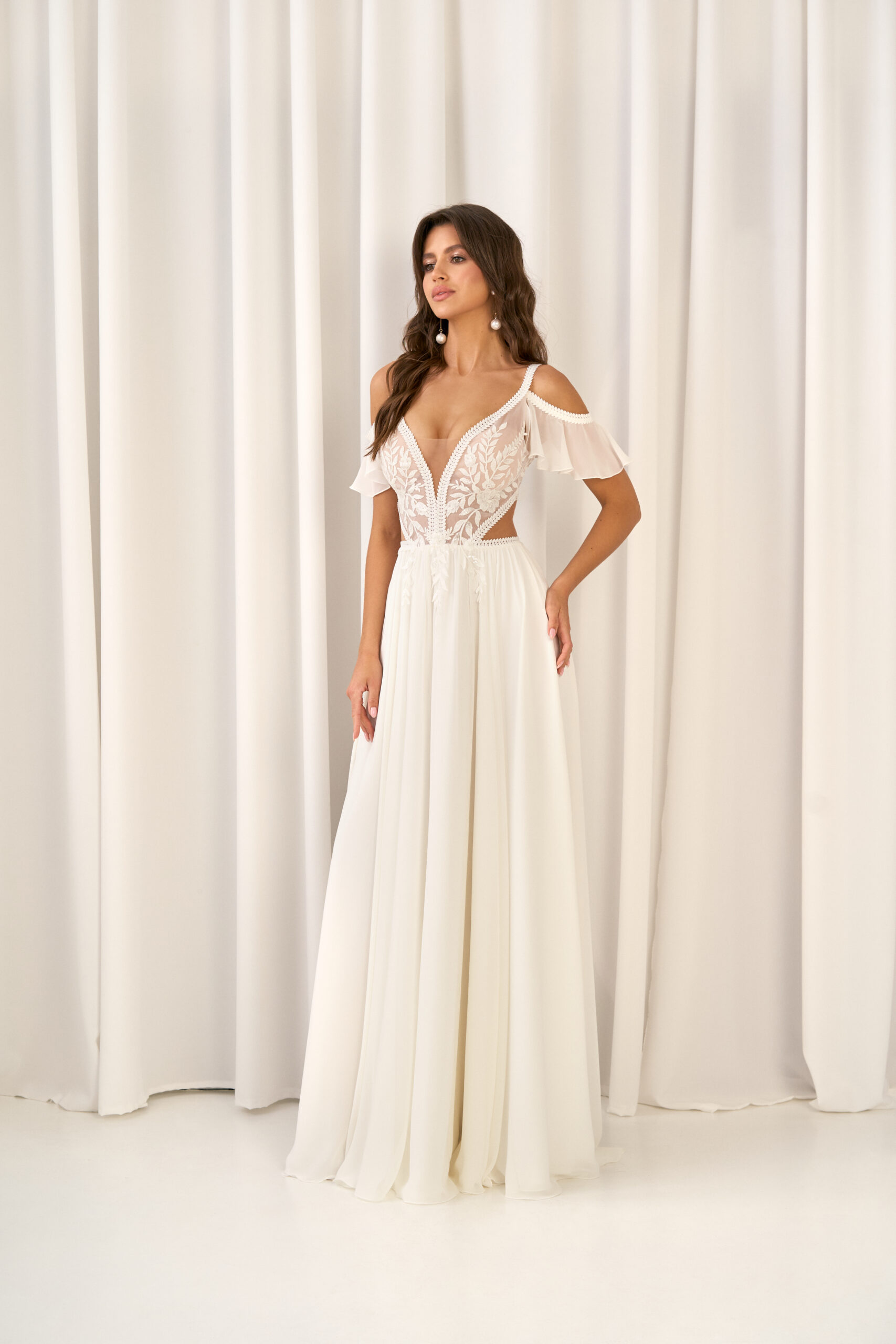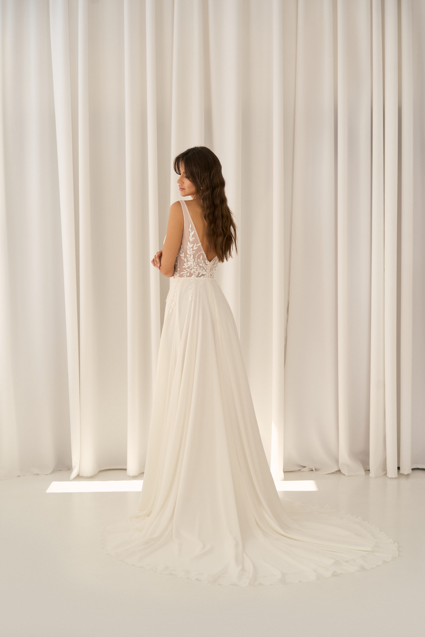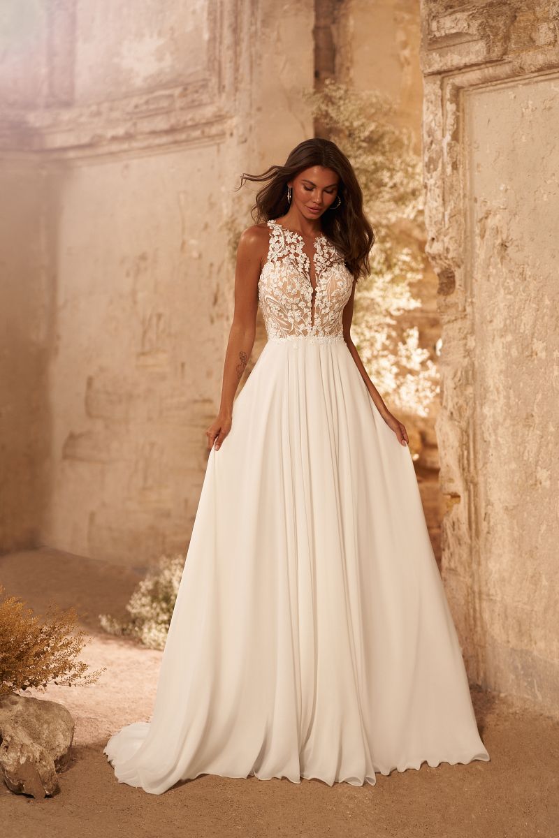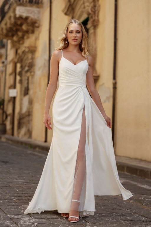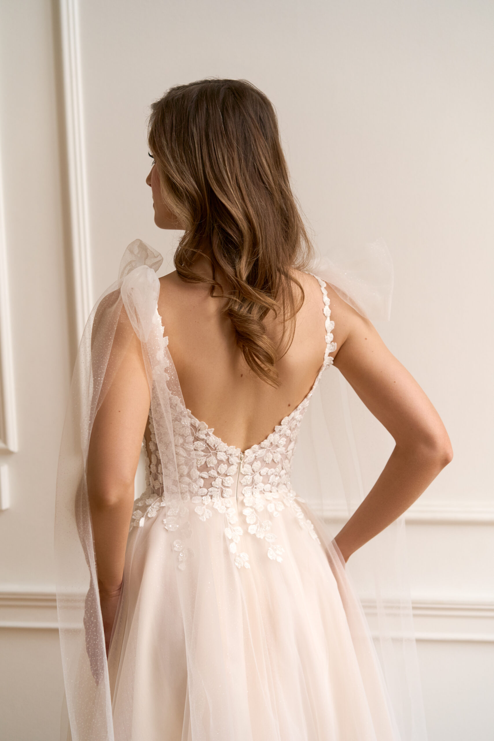 U nás na tebe čekají ty nejkvalitnější látky, elegantní střihy a pečlivě propracované detaily, díky kterým budeš v den svatby vypadat dokonale.