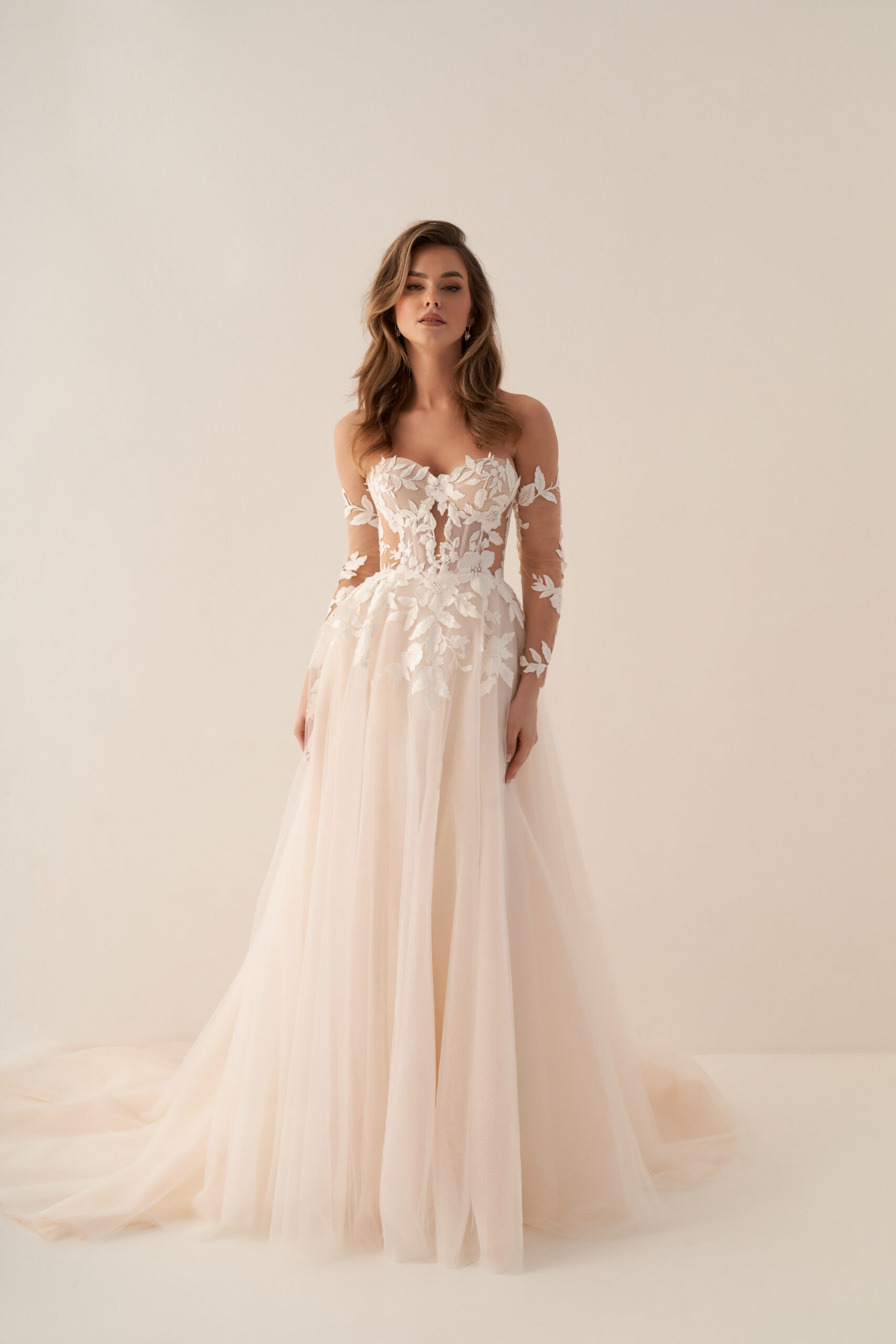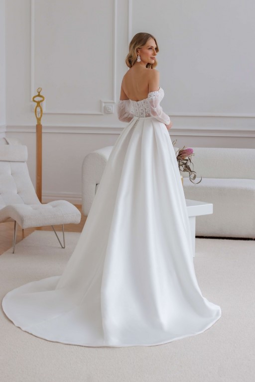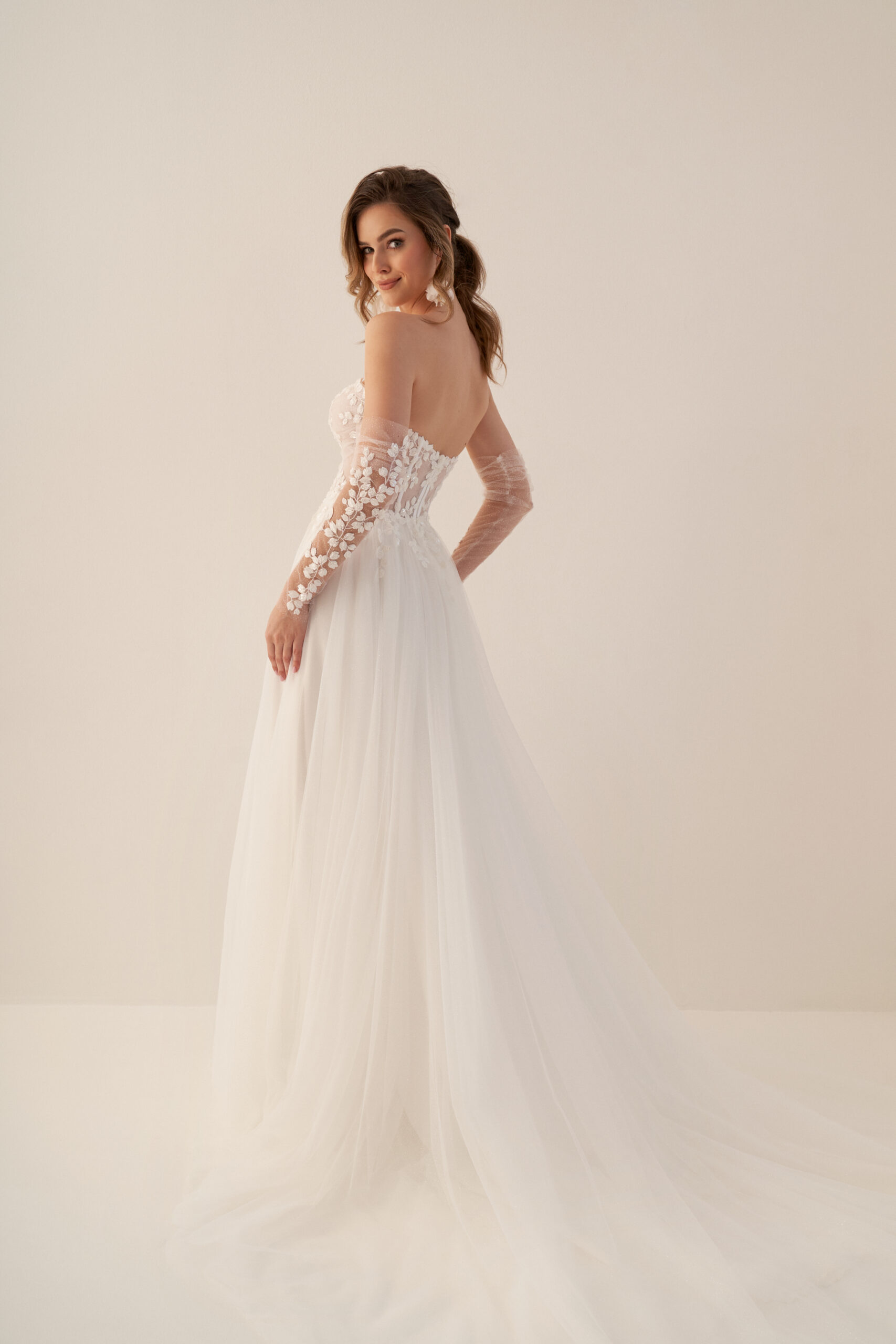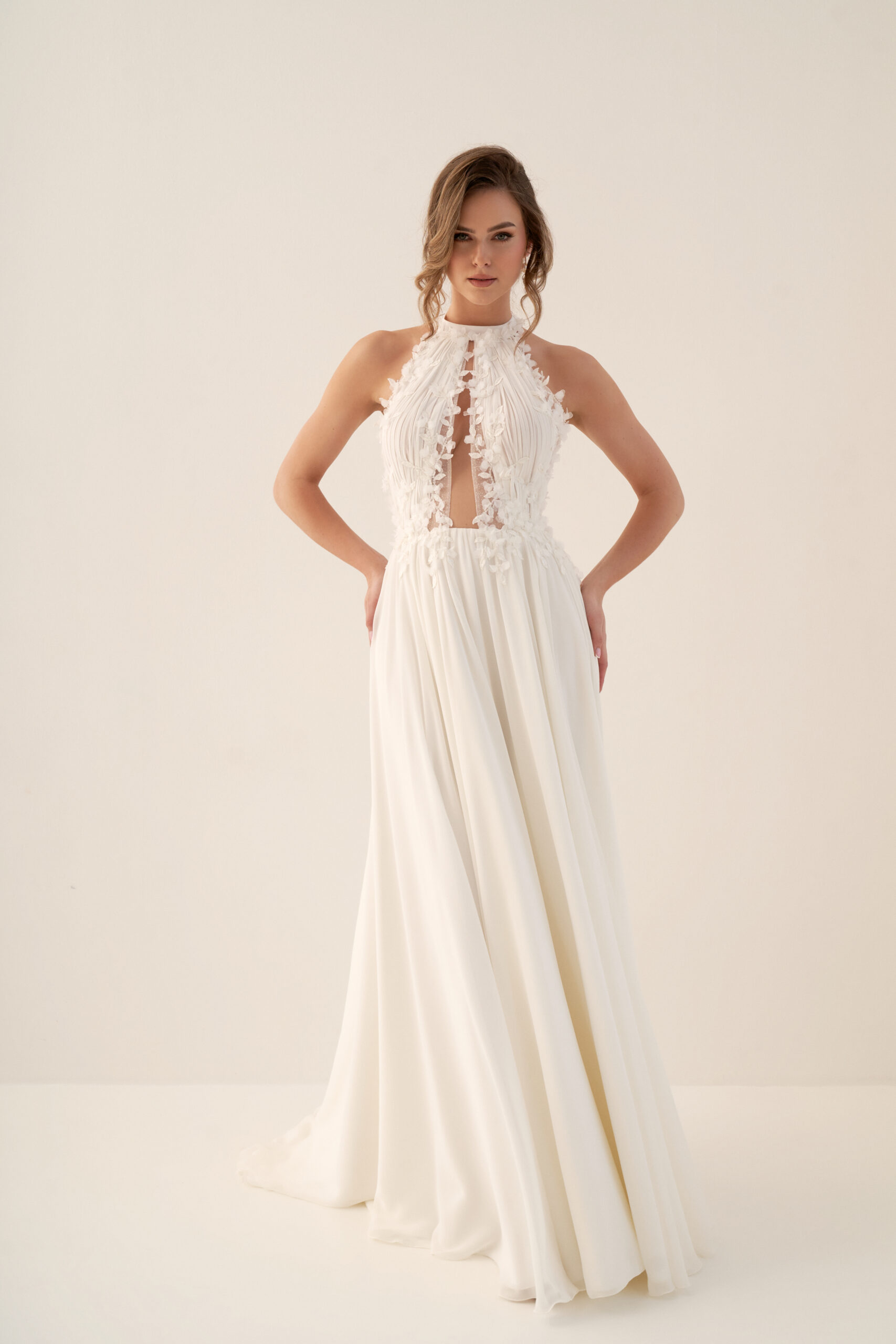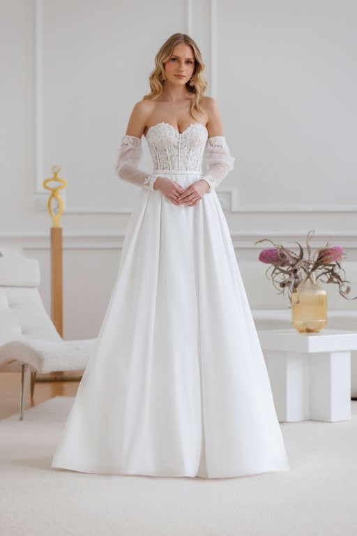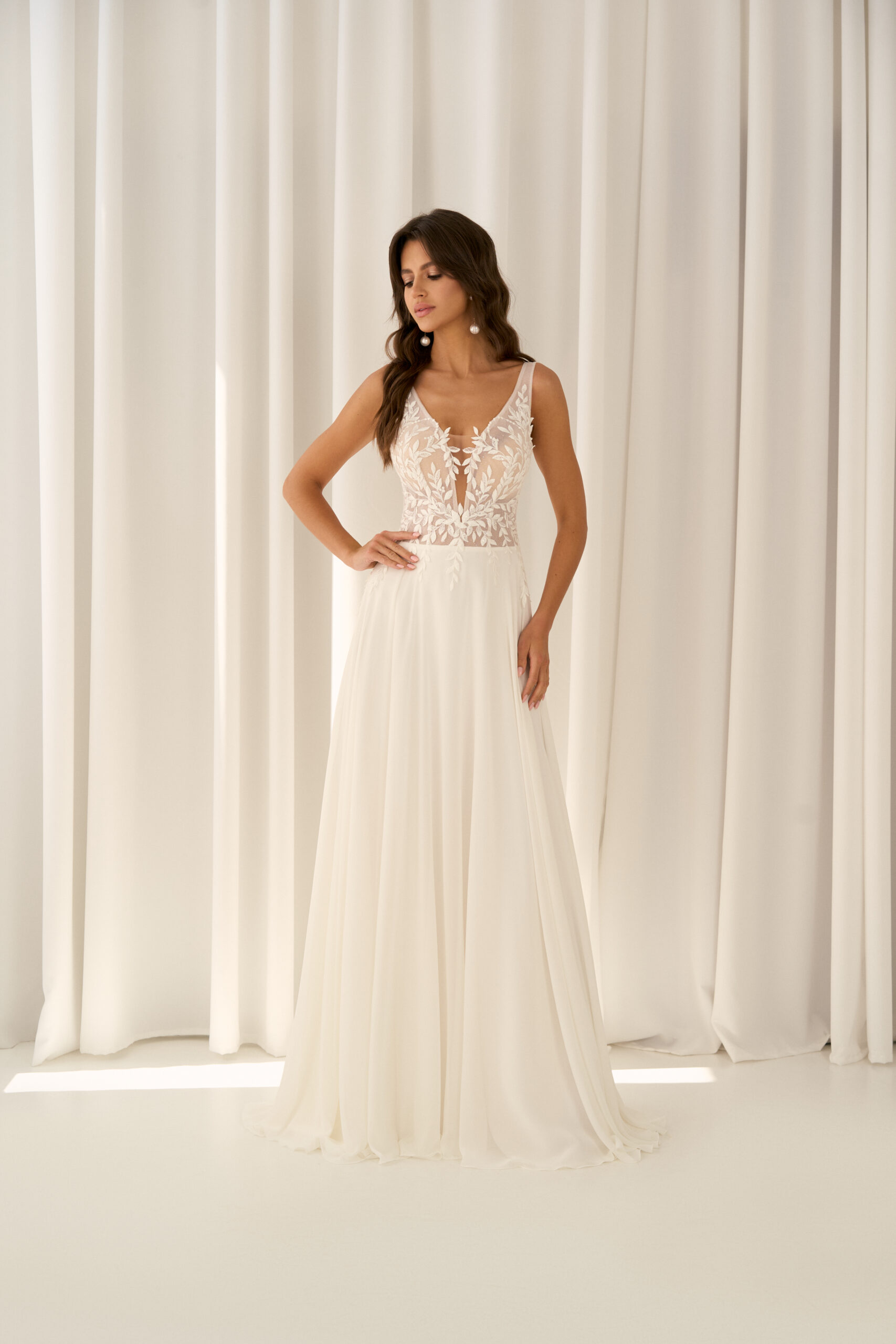 U nás na tebe čekají ty nejkvalitnější látky, elegantní střihy a pečlivě propracované detaily, díky kterým budeš v den svatby vypadat dokonale.