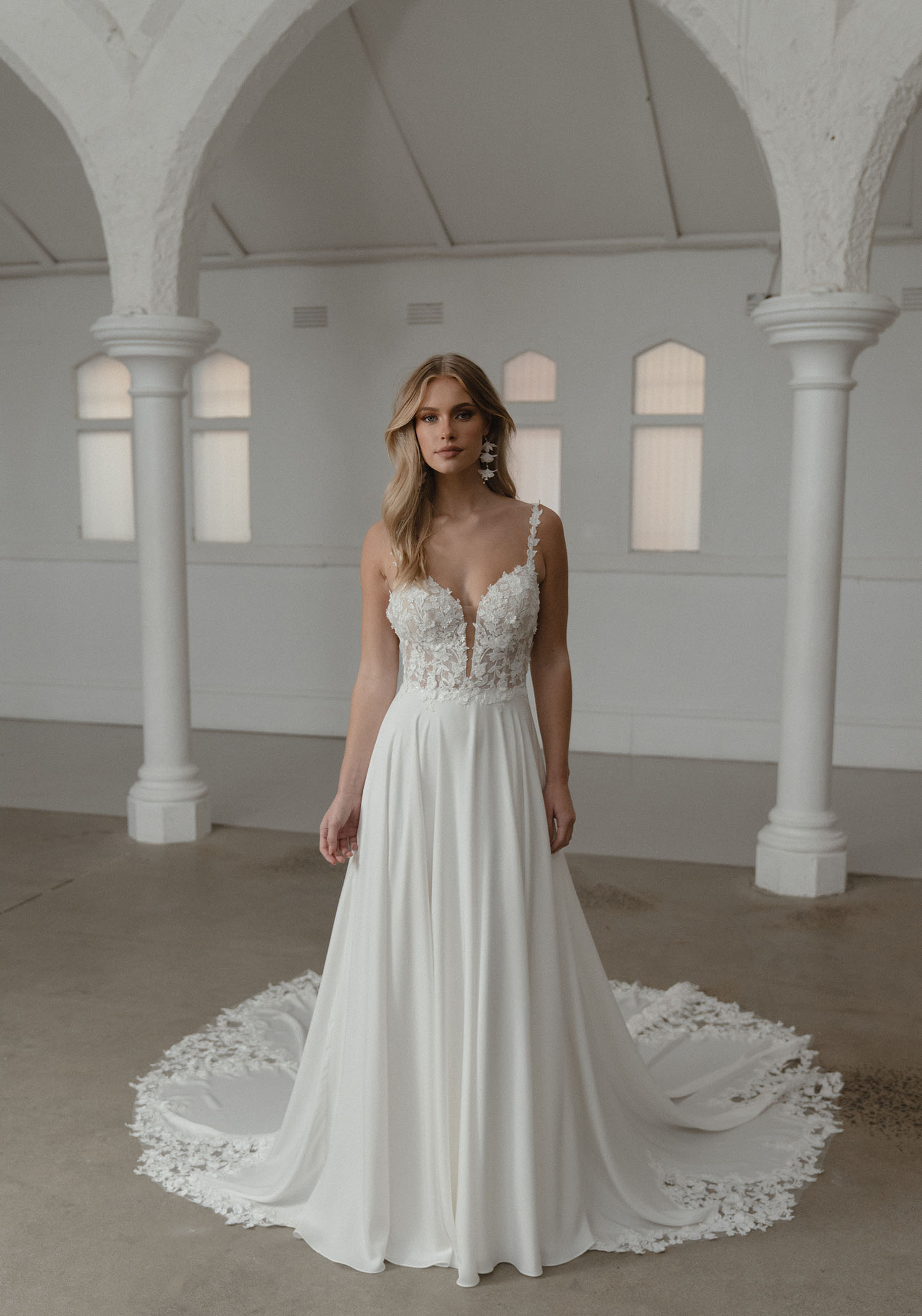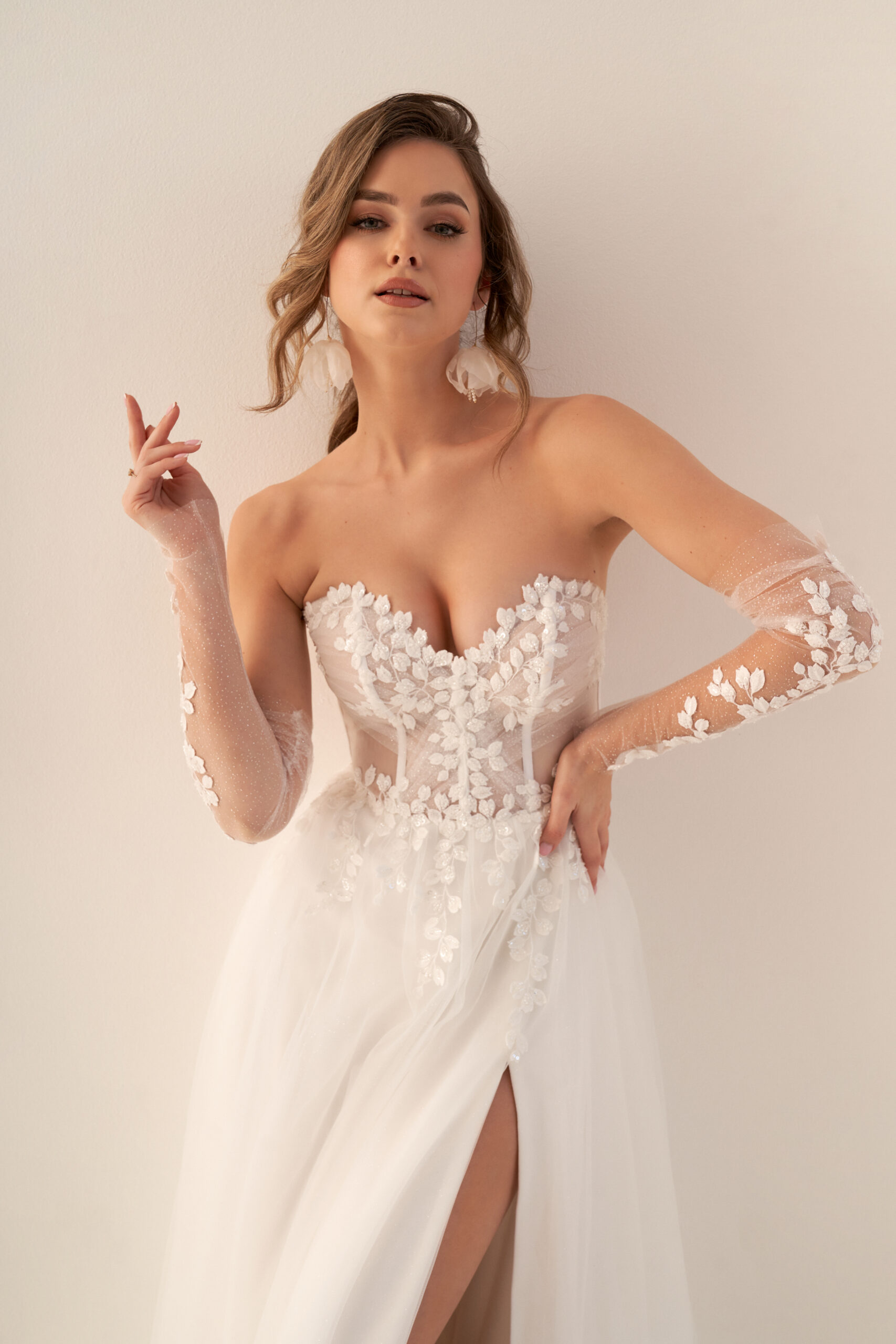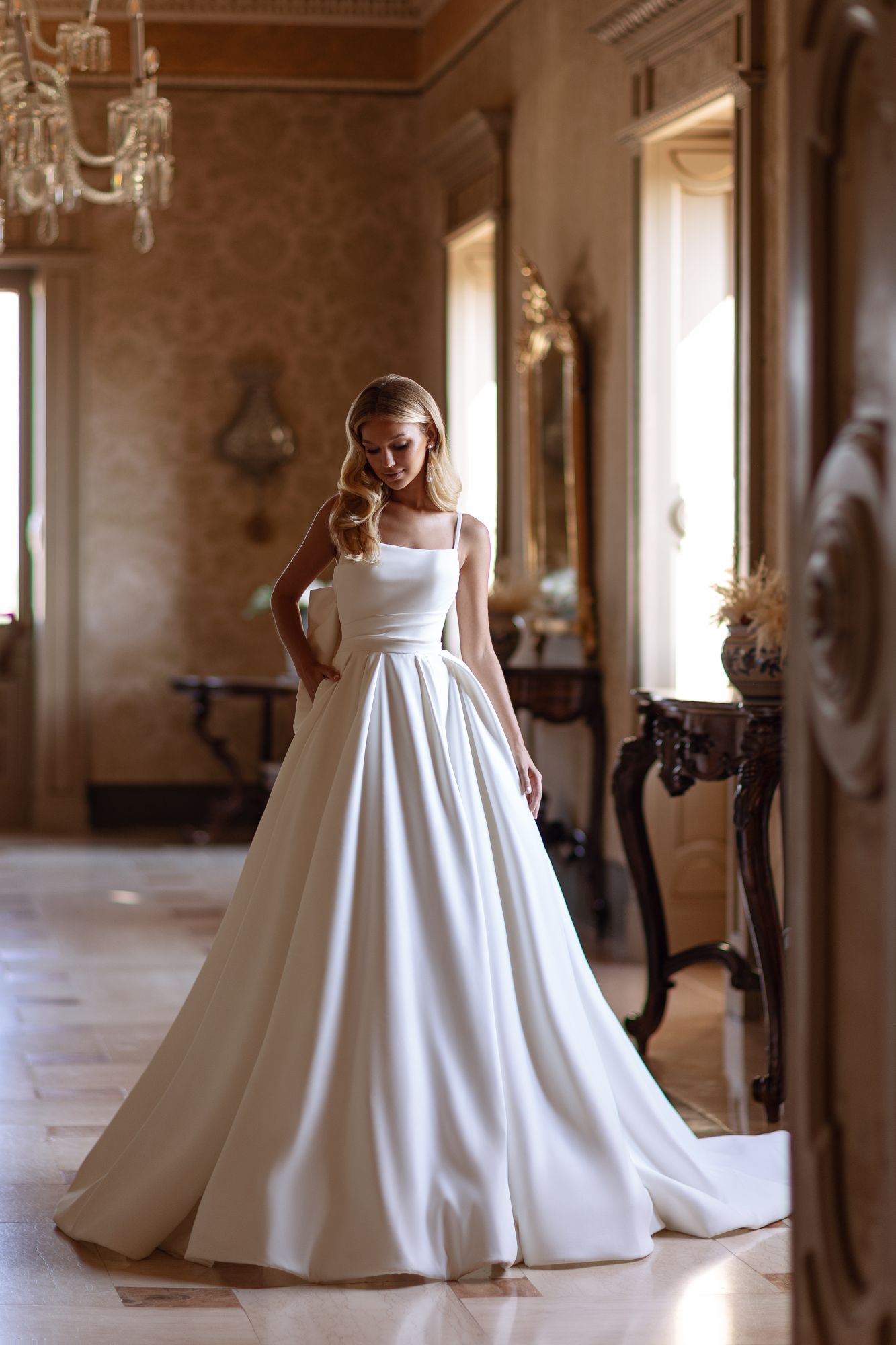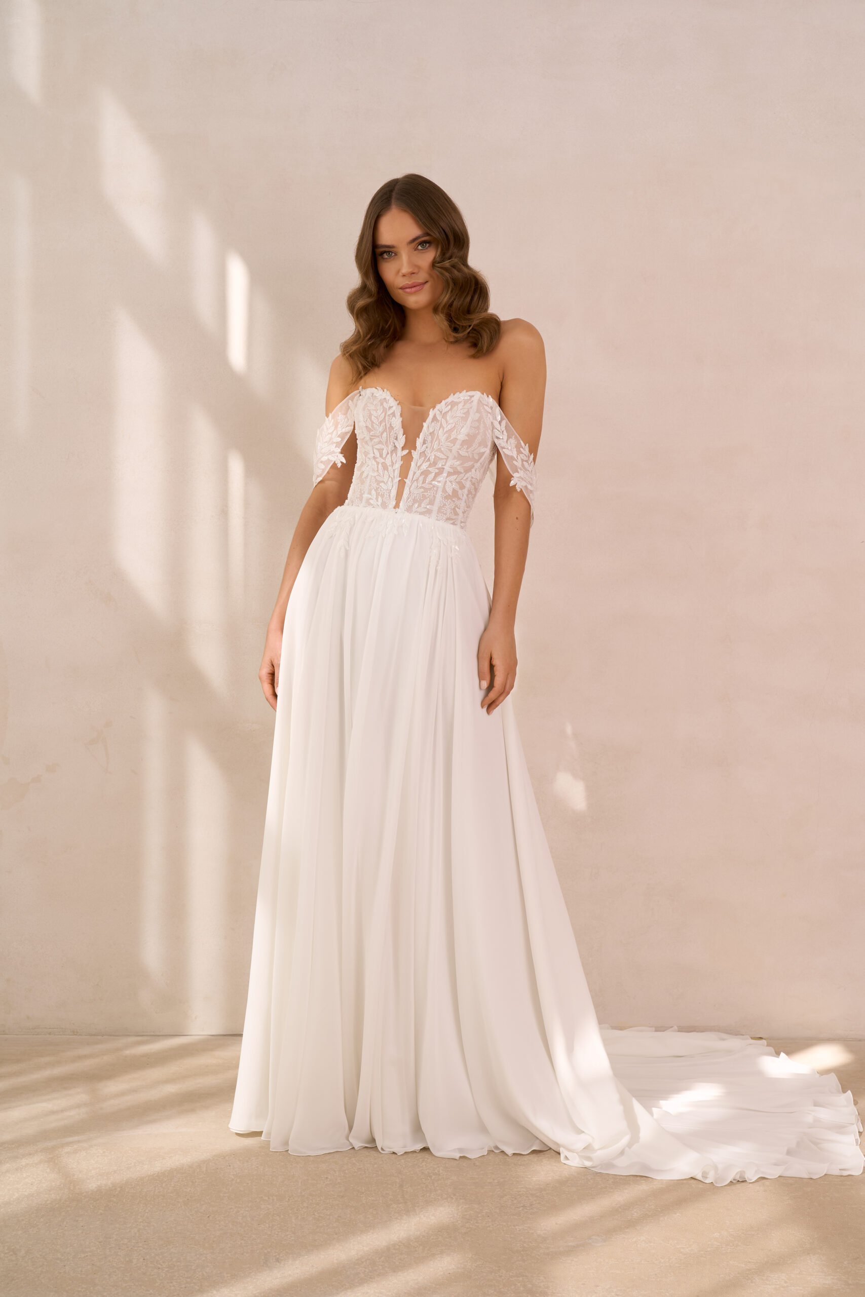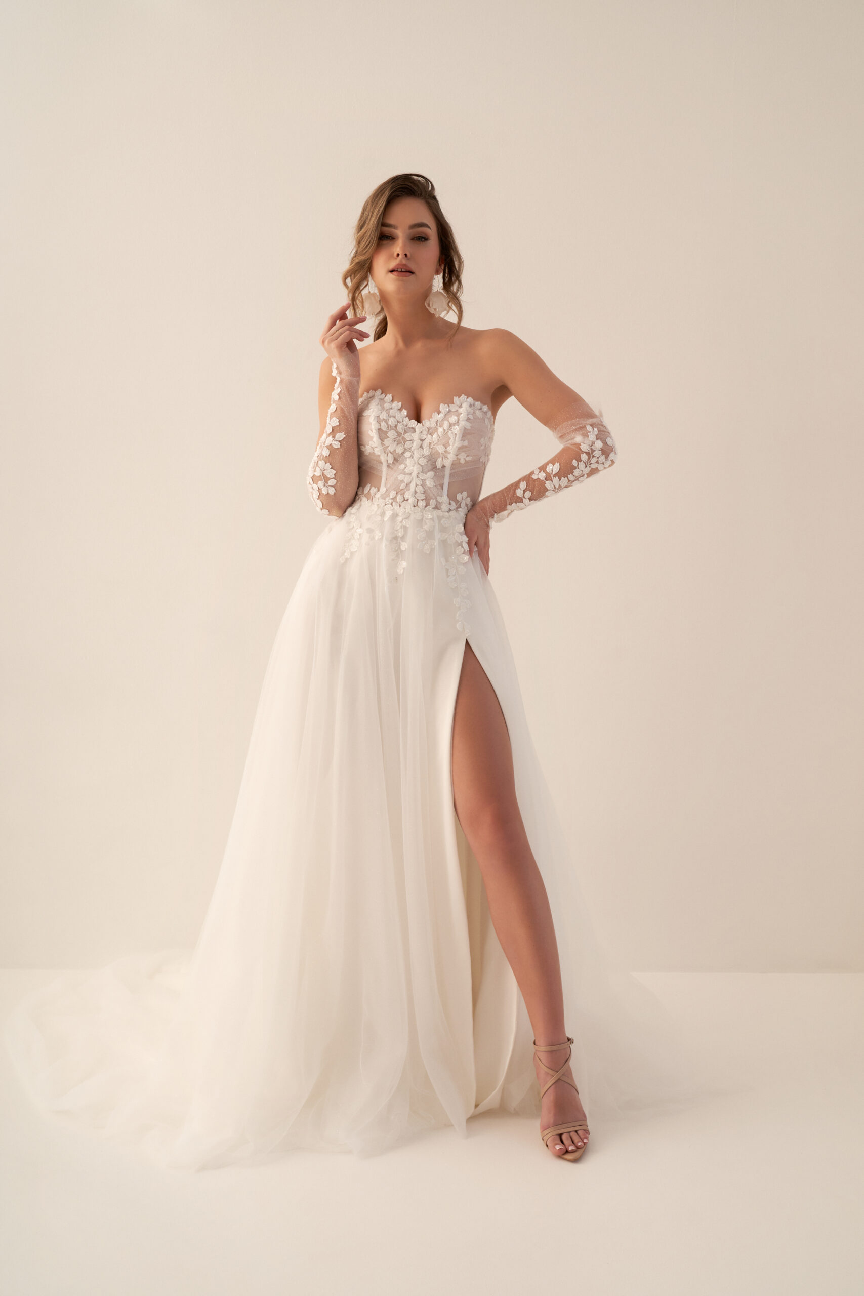 U nás na tebe čekají ty nejkvalitnější látky, elegantní střihy a pečlivě propracované detaily, díky kterým budeš v den svatby vypadat dokonale.